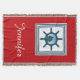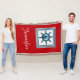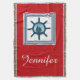 Nautisk temadesign med dekoration i segelscen i raderade fyrkanter på röd bakgrund