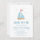 Fira din lilla milstolpe med en nautisk förstaårsinbjudan som har en söt liten segelbåt. Matchande party-decor i vår butik