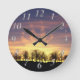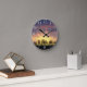 Bakom de svarta siluetterna av vinterträd med kala grenar seglar ett spökskepp genom molnen på en solnedgångshimmel.