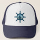 Nautisk utformning med segelbåt och hjulets dekoration på vit bakgrund