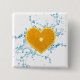 Hjärtformad bit av orange frukt med vatten stänk mot vit bakgrund.
