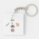 En segelbåt, fyr, ankare, fraktens hjul och AHOY! - typografi i färglös stil.