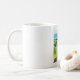 Ett scenarium runt klipporna med en segelbåt. Den här designen ser ut att gälla i Mugg