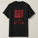 Njut av den här pizzan älskare-tröjan. Stora feta röda brev med tecknad pizza. Citatet lyder: "SLICE SLICE BABY!"