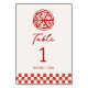 Ta med dig en charm till din pizzatematade firande med de här Segce Slice Baby-bordsnumren. Designade med illustrationer av roligt, klassiska röda och vita checkar och fet och lättläst typografi hjälper de gästerna att hitta sina platser samtidigt som du behåller din décor på temat. Anpassadets fullständiga ordalydelse och siffror gör dem till perfekt för babyduschar, födelsedagar, bröllop eller alla pizzavängningar.