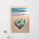 En romantisk bild av havsglas i form av ett hjärta, på en mousserande sandstrand.