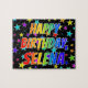 Denna livliga och livfulla pusselpussel med födelsedagstext har budskapet "GRATTIS PÅ FÖDELSEDAGEN, SELENA", där tecknen har ett färgstarkt regnbågsspektrum som inspirerar gradienten mönster, förutom en spännande stjärna med fält-bakgrund mönster. Ett spännande pussel som detta kan vara ett roligt sätt att erkänna att någon vid namn Selena fyller år. [~Z0000468]