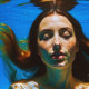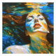 "Selene" - Kvinnor i Vatten. I denna serene, färgstark bra konst kvinnoscen i vatten flyter en vacker kvinna med långt rött hår i ett blått snurrande hav. Sunlight avskyr hennes fredliga ansikte under vatten yta. Med ögon stängt och ansikte lyft absorberar hon ljuset, vilket förkroppsligar ett starkt, motståndskraftigt och inspirerande figur i detta bild med flera färgader.