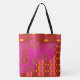 This hand drawn tote bag bursts with bold pink, brown, and yellow geometric shapes and wavy accents. The front has an inspiring quote: “I do what I love & I love what I do.” The back has a customizable name band, so you can make it truly yours. With sturdy black handles and plenty of room, it’s perfect for books, groceries, or travel essentials.