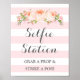 Selfie Station Bröllopsskylt Rosa Blommor Ränder Poster