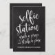 En elegant och modern brölloppsskylt, med texten "selfie station, ta en rekvisita och slå en pose" i en utåtriktad scriptfont, borststrukturen ger en spontan och lekfull känsla. Bakgrundsfärgen kan anpassas enligt dina behov och önskemål, vänligen kontakta mig om du har några speciella önskemål.