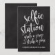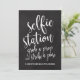 En elegant, toppmodern bröllopsskyllt med texten "selfie station, ta en rekvisita och slå en pose" i ett utåtriktat typsnitt, borststrukturen ger en spontan och lekfull känsla. Bakgrundsfärgen kan anpassas enligt dina behov och önskemål, vänligen kontakta mig om du har några speciella önskemål.