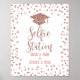 SELFIE STATION GRAB A PROP & STREJKA A POSE studentfest-skylt med en vacker ro guld konetti-design.