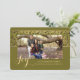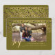 Ett sofistikerat guld- och grönt band överlagt med en inramad fotofönster på olivgrön bakgrund skapar denna fantastiska design.