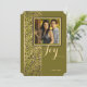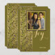 Ett sofistikerat guld- och grönt band överlagt med en inramad fotofönster på olivgrön bakgrund skapar denna fantastiska design.