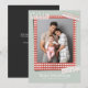 Ditt foto är inramat med ett rött rutigt papper, med glada washi-tejper i hörnen. Lägg till ditt foto, ditt namn och år och ett personligt meddelande på baksidan (eller låt det vara tomt)