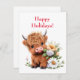 Semesterkort med baby Highlandko med tusenskönor Julkort