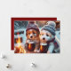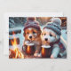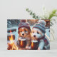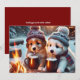 5 x 7 säsongskort med två söta valpar som njuter av en varm dryck vid lägerelden efter att ha haft ett roligt äventyr i snön.