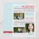 Skicka semesterglädje till vänner och familj med denna festliga hälsning från PiPo Press. Detta semestertidskort utbrister goda önskningar med insprängda säsongssentiment i en palett av turkos, rött och grått på framsidan och baksidan. Massor av utrymme för att inkludera tre favoritfoton och en personlig hälsning.