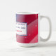 Patriotic 15oz. classic ceramic coffee mug featuring a colorful abstract stars and stripes pattern with gradient colors and tiny starlights. Navy blue 'Happy 250th Anniversary America, Semiquincentennial • July 4th 2026' and red modern name are framed with blue and red borders. See 'About' for more information and care.