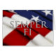 Semper Fi som förkortas från latinen, formulerar "semperfidelis", betyder "alltid troget". I detta kort, ord atop det rött, vit och blått av en amerikanska flagganbakgrund. Tillfoga din egna text till insidan. En perfekt långt till något att sägagrattis student eller pensionär.