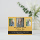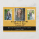 Lägg till tre foton och din studenten-information till det här trendiget senapsformat gult och svart studenten, vykort "Spara datum".