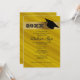 Senard gult/guld studentfest inbjudan med guld rand och en svart studentmössa.
