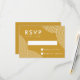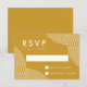 Moderna bröllop-svarskort med vitt snurrande geometriskt linjer i hörnen med senap guld-bakgrund. Anpassa bröllopen OSA för senapssenap genom att lägga till ditt OSA datum och anpassningsbarna accepterar/avböjer ordalydelsen. Den moderna boho-OSA kort går tillbaka till visningen med en solid mustard-färgad-bakgrund.