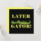 En söt grönt alligator med gult som läser Senare Gator! Senare T-shirts, påsar, mugg, magneter, nyckelringar, keepsakes, kort, klistermärken, knappar, kuddar och mycket annat.