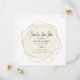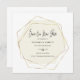 Ett elegant för att låta vänner och familj veta att du har lagt om ditt bröllop. Ett geografiskt ram i guld omger din datuminformation om bröllop. Spara Vårt nya datum är skrivet i ett modernt skript, med efterföljande detaljer.