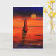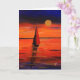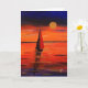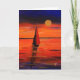 En färglös målning av en segel som seglar in i sol på kvällen