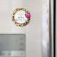 En magnet för en bachelorettfest. En leopard spottar mönster mot en bakgrund. En coola tittar glas av vin i tjockt svart bläck. Vin inuti glaset är shock rosa. Vit och ljusa färger. Anpassa med din bachelorette-info på en vit hand plockade-cirkel. Sista utfyllningen före ring skrevs i ett coola trendig-teckensnitt. En bild av Faux guld glitter ge och glitter illusioner sprinklades längs toppen.