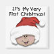 Latino Baby Första julen tote bags, T-shirts och mer med ett vackert Latino baby, klädd i ett rött strumplock med vit fluffy trim!