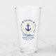 Senaste segeln före Veil Nautical Bachelor Party Navy Blue Anchor Hearts Drinking Glass med blått skript och Guld Ring Circle