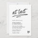 Modern bröllopsinbjudan med en enkel design med "äntligen" i en handskriven penselskripttypografi tillsammans med ett hand plockade-hjärta i nedre högernas hörn. Paletten färg är mjuk svart över en vit bakgrund och kan ändras i designredigeringen av verktyg. Enkelheten i layouten gör att den moderna bröllopsinbjudan får en elegant.