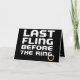 Säg till alla att det här är din sista kväll som en fri man när du skickar ut dessa roliga, "Last Fling before the Ring"-inbjudningar till reklampartiet. Redo att anpassa med din party-information.