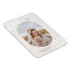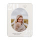 Rundat fotot ram, högklassig studenten-kundenmagnet. Mjuk elfenbensbakgrund och vita studenten-årsnummer med linjer som mall för årsklass, student namn och skola.