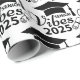 En svart Studentmössa med typografiskt skript som läser Senior Vibes 2025 för Studenten-figurering Pappert