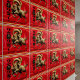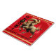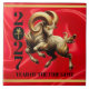 Förhöj dina underhållnings- och måltidsupplevelser under det månnyåret 2027 med denna festliga platta, som har den Eldiga Geten dansande på en lyxig falsk röd silkesbakgrund med falsk guldfolie runt kanterna, plus det kinesiska tecknet för Get/Får/Bagge, som är gjort i falsk guld och står i stället för nollan i 2027.