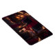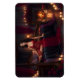 Låt ditt hjärta dansa till romantikens rytm. En susning av bärnsten droppar från öppen spis, dess långsamma, vänliga hunger slickar rummet till ett skimrande ljus. Hon sitter i hjärtat av det hela, en krusning av röd siden, en röd som samlas som ett löfte och spills som vin. Hennes hår är en mörk flod som faller över ena axeln, en lugnhet i kurvan av hennes pose, ett halvleende som håller andan. Lakan krusar sig svarta under det scharlakansröda, ett spel av ljus och viskning, rummet en vagga av värme där viskning och flamma samtalar.