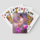 En AI-genererad målning av en vacker kvinna omgiven av rosa och lila blommor