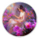 En AI-genererad målning av en vacker kvinna omgiven av rosa och lila blommor