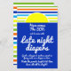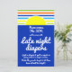 Baby Shower Late Late nigh-blöjor-spelskylt. Matchande design för här kommer Son Sommar Rand Baby Shower. En modern och roligt och färgstark design för en uppslagen sommarbabydusch. Teckensnitt och roligt för anpassade. Konstruktionen ingår i uppsamlingen för sommardusch, som omfattar inbjudningar till babydusch, dagbokshöljen och bok bibliotek, party-förråd, dekorationer, gåvor med mera.