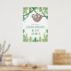 Firar mamma att vara med det här vackra välkomsttecknet för en slättskdusch! Med en vacker, handmålad mamma & baby-slott med en söt blå bocklapp i djungeln. Svingviner, söta löv från mjuk grönt och blå och gula blommor dekorerar bakgrunden.