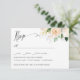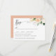 Den här eleganten botaniska OSA kort är designad för att samordna med vår insamling av färgen blommigt bröllop för sommarvatten och har en sofistikerad vattenfärg gren av blommor, eukalyptus löv, orange och löv i en färsk palett med vit, elfenbensfärgad orange, grönt och rosa på kortets övre höger med önskat svarsdatum och val av måltid eller inmatningsval. Kort återgår till matchande rosa. En kalligrafisk beröring lägger till kortet. En modern och klassam utformning för elegant chic bröllop under vilken säsong som helst. Vi kan byta färg, typsnitt och annat för att göra din design unik personlig. Kontakta oss via butiken eller skrivan på citronelladesign@gmail.com om du behöver hjälp eller anpassningsbar.