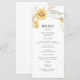 Rustiska solrosolja bröllop Menu med handmålade blommigtar för vattenfärgad gult och jordbesläktad botanisk bladning. Anpassa din egen bröllop-meny med hjälp av mallen som finns.