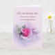 Ett romantiskt och sentimentalt jubileumkort till din make/maka med ett fotografi av en rosa ros omgiven av mjuka filigranswirlar. Framsidan lyder: På vår bröllopsdag lovade jag att älska, hedra och beskydda dig för evigt.