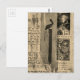 Sepia Pelican mixed media collage Vykort