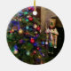 Den här färgstarka prydnadsfärgen träd har en färglös kvartsoldat från Nutcracker, mot ett Julgran.