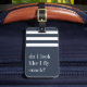 Fatta din vanliga flygstatus med den här söta och roliga bagagetaggen. Utformningen innehåller citatet "Ser jag ut som om jag flyger tränare?" i vitt skript på en strimlad bakgrund. Anpassa baksidan med din kontaktinformation.